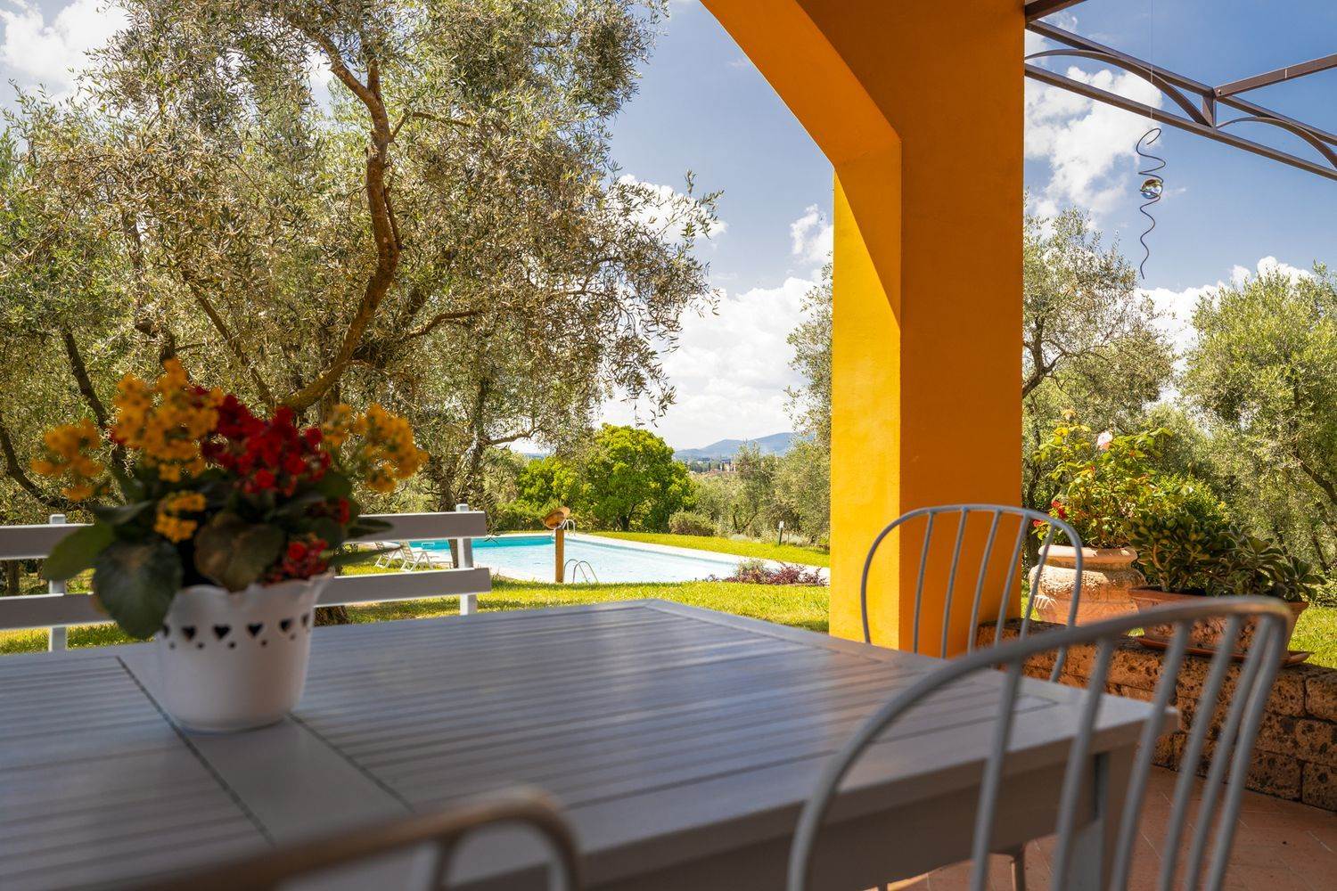 Il giardino di 400 m² è un vero angolo di paradiso, arricchito da circa 350 piante di ulivo su un terreno di 10.000 m². Immagina di rilassarti accanto alla piscina di 14 metri, ideale per rinfrescarsi durante le calde giornate estive. L'impianto di depurazione nuovo garantisce acqua pulita e cristallina, mentre il sistema di irrigazione automatica mantiene il giardino sempre rigoglioso.